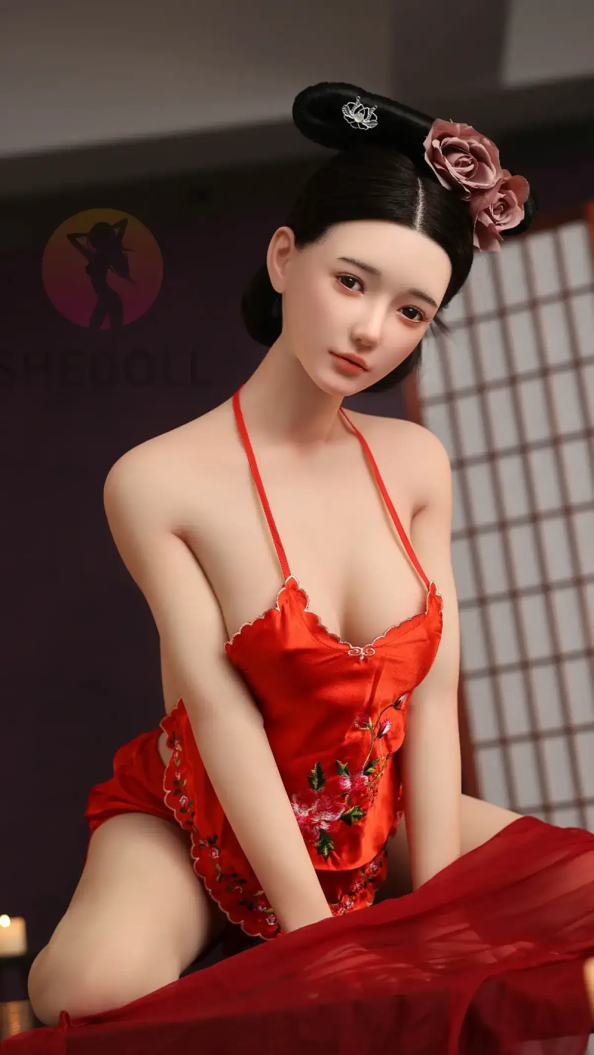 SHEDOLL アショ 158cm|Cカップ|赤シルクキャミソール風|美しい細腰アジア美人|発熱ボディ+植毛カスタム|純欲系ガールフレンド同棲