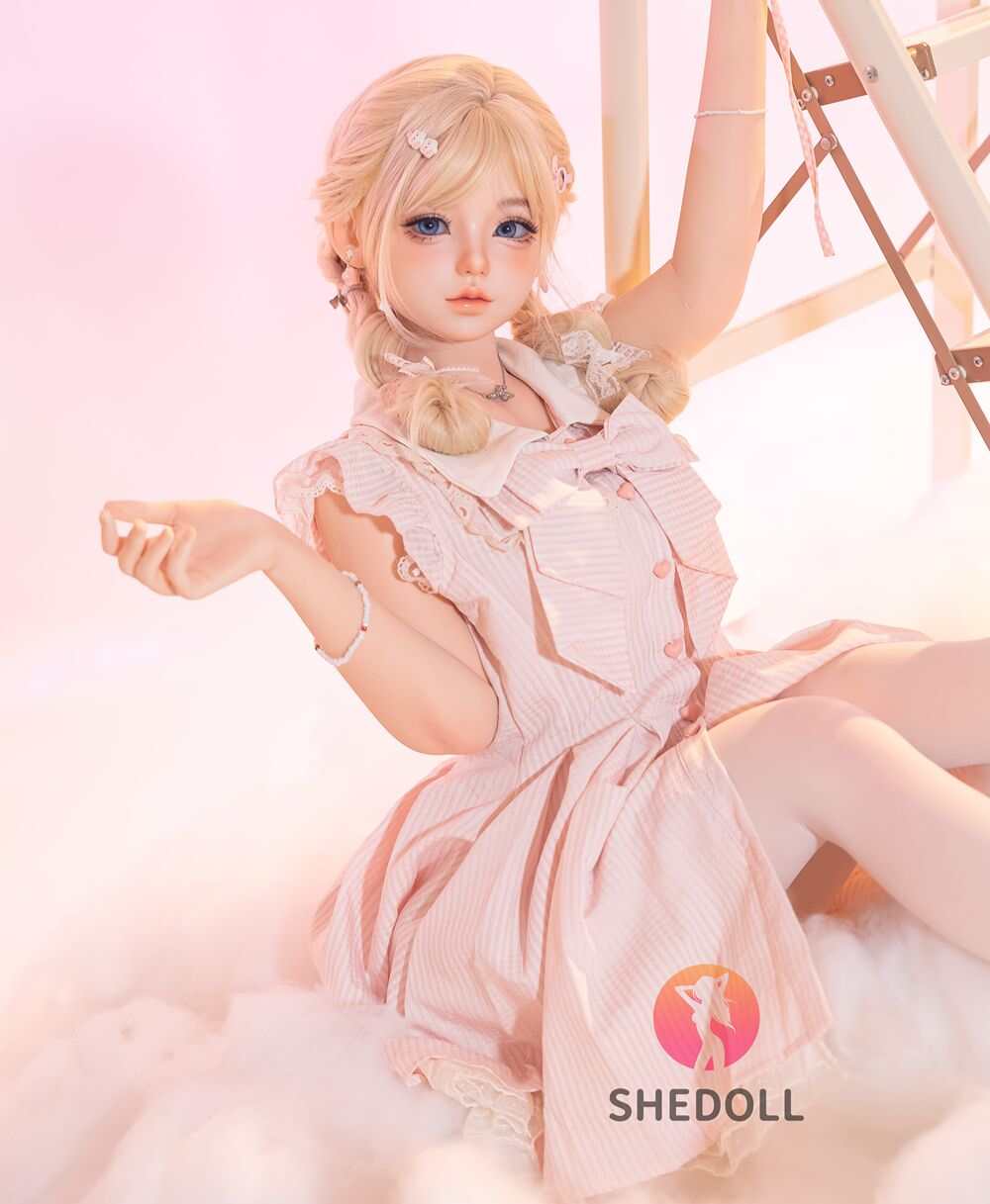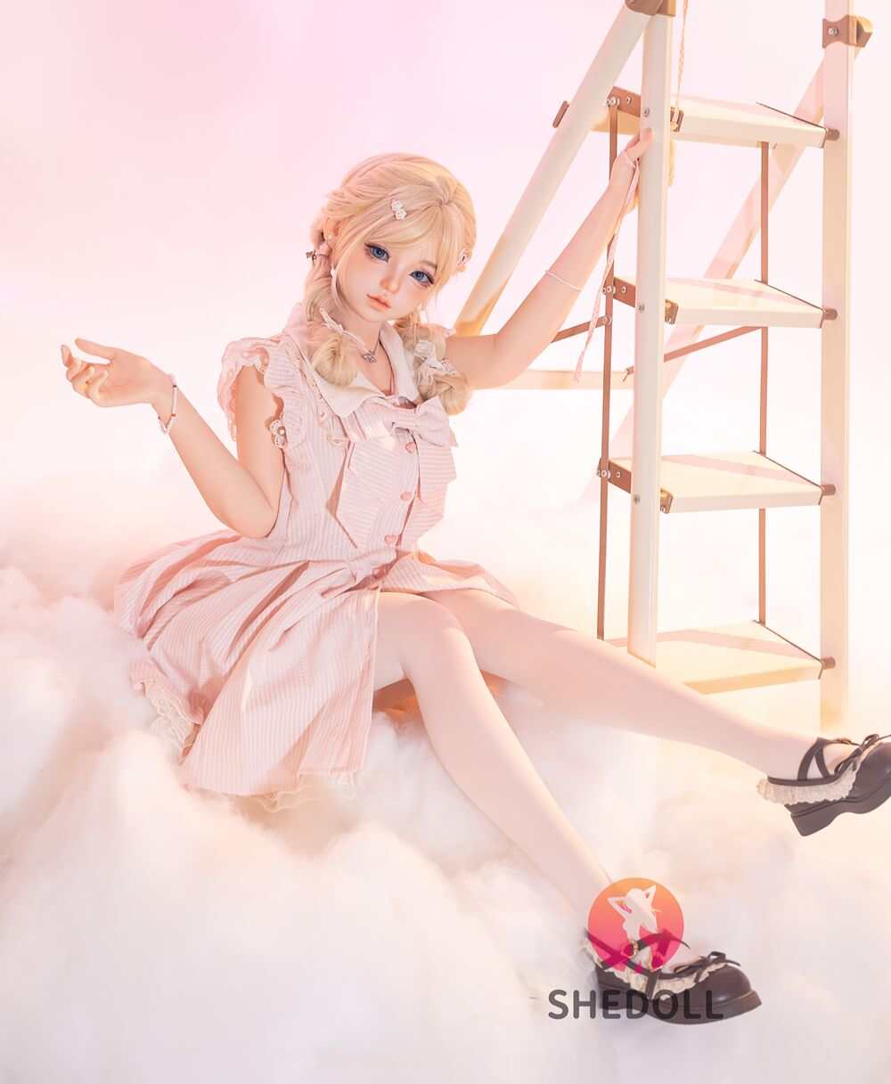 SHEDOLL 東笙(トウショウ)152cm|Aカップ清楚系 · 淡桜リボンドレス|綿肌軽量ボディ|雲上の同棲人形