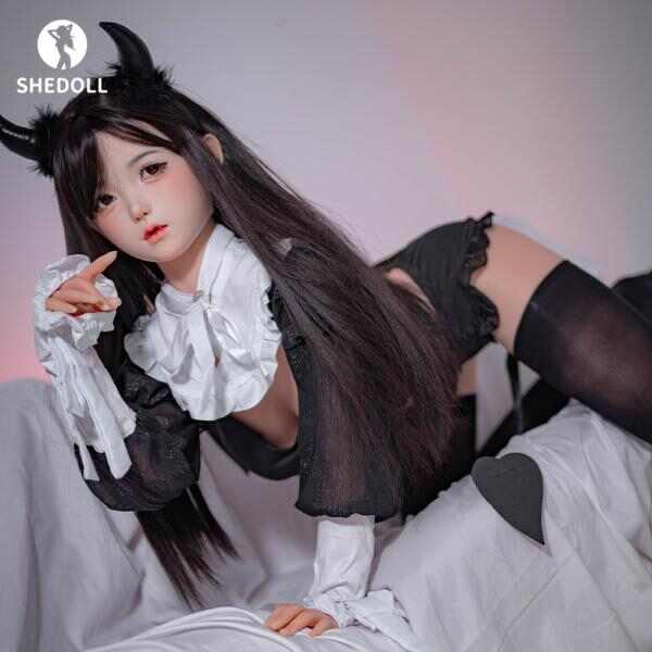 SHEDOLL ゲンゲン 148cm Dカップ|裂帛魔女黒膠ロリータ衣装|小悪魔腰殺×骨棒付|植毛+可動口腔+加熱機能|コスプレ嗜好者専用
